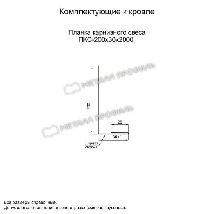 Планка карнизного свеса 200х30х2000 (VikingMP E-20-8019-0.5)