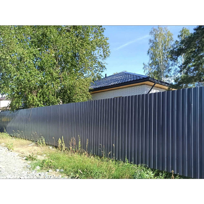 С-8 – самый низкий и экономичный профиль. Его несущая способность относительно невелика, в связи с этим такой профиль не используется в сооружениях, где необходима повышенная прочность. Как правило, С-8 применяют в качестве стенового облицовочного материала, а также для возведения заборов и подвесных потолков. Характеризуясь наиболее низким профилем – всего 8 мм – одновременно он имеет самую большую полезную ширину – 1150 мм. В основном на производство С-8 берётся металлопрокат толщиной от 0,4 до 0,7 мм. Это подходящие толщины для отделки фасадов или устройства заборов в климатических зонах с низкой ветровой нагрузкой. Для временных конструкций (бытовок, сараев, туалетов, времянок) в Компании Металл Профиль вы можете купить оцинкованный профлист толщиной 0,35 и менее мм, чтобы не переплачивать без необходимости.