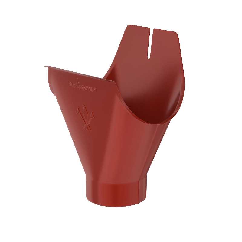 Воронка желоба устанавливается на водосточном желобе и является устройством, передающим поступающую из желоба воду в водосточную трубу. Не требует дополнительных мер по герметизации. Надежность воронки желоба обеспечивается наличием усиленного ребра жесткости в передней части.